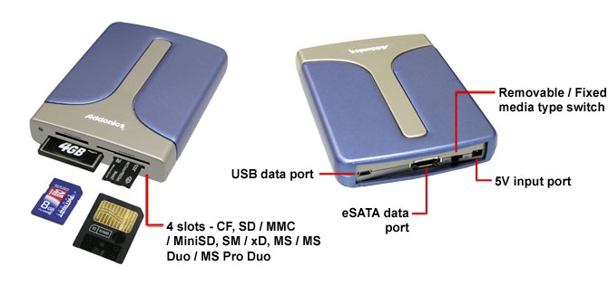 eSATA - 1500 Mbits/sec USB 2.0/1.1 - 480 Mbits/sec/12 Mbits/sec auto sense |