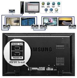 RS232C, a standard of serial communication, is used for the communication between PC and displays. A Multiple Display Control (MDC) allows various displays to be easily and simultaneously operated by a PC, which is possible with the RS232C function.