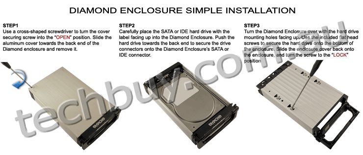 Drive enclosure: 8.19 x 4.57 x 1.46 in. (208 x 116 x 37 mm.) Drive Cradle: 8.93 x 5.75 x 1.61 in. (227 x 146 x 41 mm.)