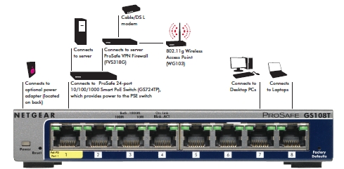 The GS108T comes with an intuitive, Web-browser interface which offer simple Smart Switch