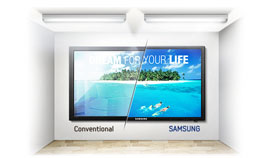 Samsung is committed to creating more efficient, more environmentally conscious technologies. From manufacturing to shipping to the way your product operates, were always looking for a better way of doing things. This Samsung LFD saves energy by being able to automatically adjust its bright levels as ambient light changes thus reducing the energy being used.