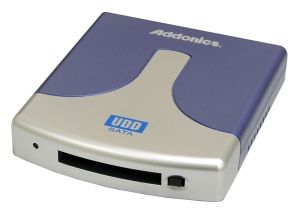 The Addonics Pocket UDD (Ultra DigiDrive) II is one of the fastest Readers/Writers for Flash media, PCMCIA hard drive and ATA Flash. Build on the same utilitarian concept of its predecessor Pocket UDD, the Pocket UDD II supports maximum throughput of 150 Mbytes/sec via eSATA or the latest USB 3.0 connection, cutting almost half of the data transfer time between the new high speed media and the computer.