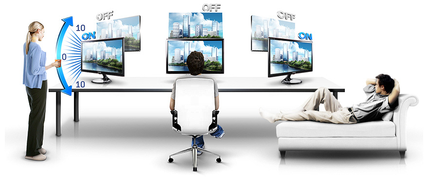 The Samsung HDTV monitor TA350 feature the Magic Angle Vertical to deliver a picture-perfect screen even when not viewed from directly in front. This means that you can watch your monitor sitting down, standing up or lying on the couch and still enjoy a great view. And with 20 different angle steps (10 up and 10 down) you will always have a choice to match your position. So, when watching with Magic Angle Vertical, which is even also specialised for HDTV, it feels like you’re always standing right in front of the screen… even if you aren’t.