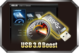 New ASUS USB 3.0 Boost technology supports UASP (USB Attached SCSI Protocol), the latest USB 3.0 standard. With USB 3.0 Boost, USB device transmission speed is significantly increased by up to 170%, adding to already impressively fast USB 3.0 transfer speeds. USB 3.0 Boost provides a user-friendly graphical interface, which instantly accelerates transfer speeds for USB 3.0 peripherals with exclusive ASUS device auto-detect settings.