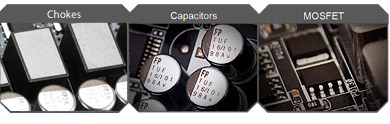 Get rugged performance even in the most challenging conditions with robust TUF chokes, solid capacitors, and MOSFETs--certified through third-party, military-grade testing. TUF Chokes, also known as the Ferrite Choke, is a made of a compound of various types of metal instead standard iron, enables the support of up to a massive 50A of rated current, much higher than conventional component. Furthermore, the single piece packaing also elimates the emission of virbation noise, delivering superb charactoristics as well as durability under extreme conditions.
