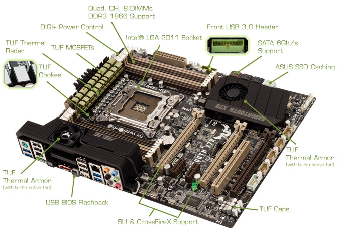 Intel Socket 2011 for 2nd Generation Core i7 Processors Supports Intel Turbo Boost Technology 2 * Refer to www.asus.com for CPU support list |