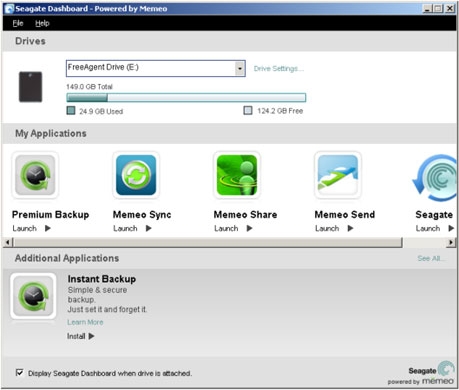 - Includes the Seagate Dashboard management tool for easy management of backup schedules and file encryption, and viewing drive statistics