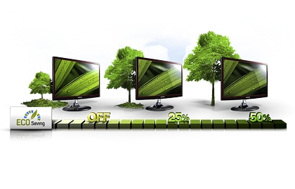 Eco saving makes saving energy easy. It adjusts the brightness of your Samsung monitor based on how much energy you want to save. And with the choice of three energy saving modes (50%, 25% and Power Saving off), you can really tailor your monitor use to meet your own personal needs. Samsungs commitment to saving energy is designed to help both you and the environment, and with up to 50% saving on consumption, you can really make a positive impact on your eco footprint. Take the effort out of saving energy and take control with Eco saving.