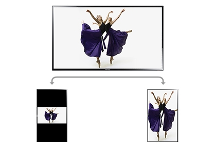Create content in portrait or landscape modeand then rotate it without having to rework on the content. Samsung displays support a pivot and Image Rotation function that display content vertically or horizontally, without ratio distortion. Conveniently rotate your content with two display options: original ratio and full ratio.