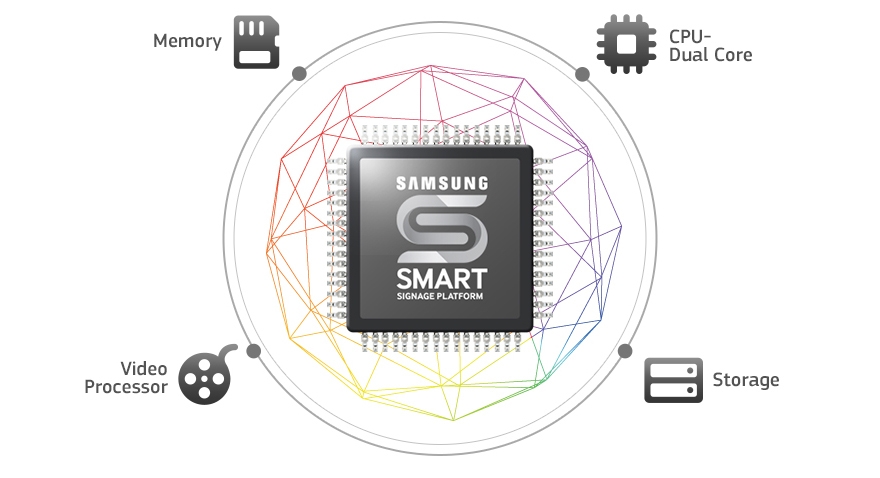 The included Samsung MagicInfo Premium S Player handles content playback for video walls up to 4 x 4 and scheduling of a wide range of content and file types.