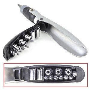 With this 3-in-1 Combination Multi-Tool, you've got three of the most used tools for a variety of jobs! Perfect for your car, home, boat or office. It features a comfortable, ergonomic handle, and will get the job done! The handle flips up to reveal a storage space for all the included bits!