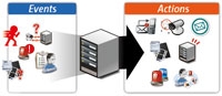 - Actions: Video recording, email alert, SMS alert, buzzer, PTZ camera control, alarm output, and user-defined action.