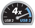 USB 3.0: up to 5Gb/s USB 2.0: up to 480Mb/s |