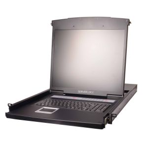 The Serveredge SED-KLVGA-1619 rack console features a 19" Widescreen A Grade LCD screen and an integrated 16 Port VGA KVM switch. The keyboard is a 104 key notepad keyboard.This state-of-the-art modular rack console offers a space saving, streamlined approach to your rack environment by integrating your LCD monitor, KVM switch, Keyboard, and Mouse options in one unit.