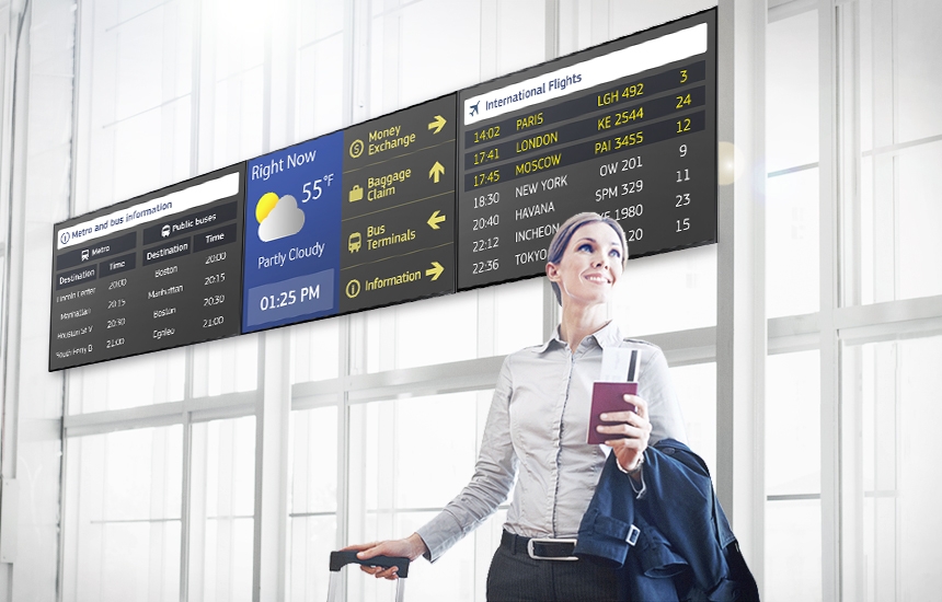 DHD Series digital signage delivers highly advanced technology to create a continuously immersive viewing experience. This professional signage solution offers 700-nit brightness, broadcasting vivid, highly legible images in various lighting conditions. The solution is ideal for information delivery in areas that require superb readability, for example, transportation terminals, shopping malls and other brightly lit environments.