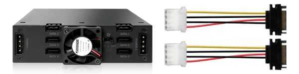 - Fits 6 x 7mm to 9.5mm 2.5” SATA hard drives or SSD’s in a single 5.25” bay for high performance