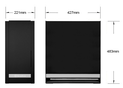 221mm (W) x 483mm (H) x 427mm (D), 46 liters |