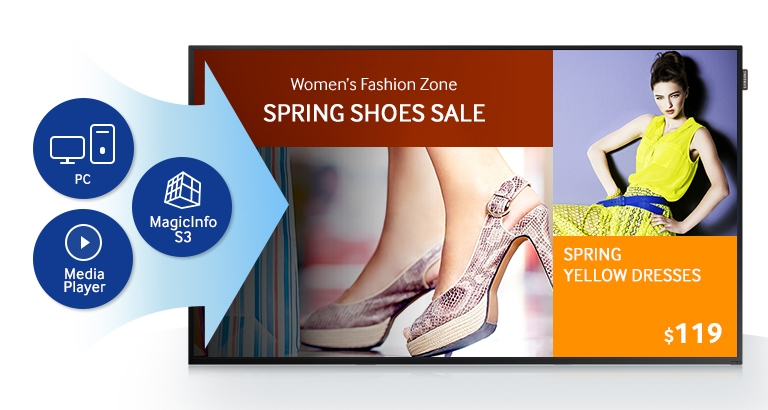 New MagicInfo S3, a content management solution embedded in 3rd Generation SSSP enables you to create, deploy and manage content more easily than the previous version with an enhanced UI and UX. MagicInfo S3 leverages 3rd Generation SSSP, an open platform that provides compatibility with myriad third-party software for flexibility and ease of use with other applications.