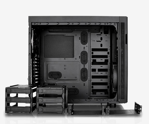 Built-in sound-damping panels incorporated the top, front, and side panels of the Suppressor F51 chassis to reinforce noise reduction for silent operation. Optimizing cooling performance with removable mounted top panels to expand cooling configurations for both air and liquid cooling solutions. Design and build a custom leading-edge silent operation PC with options for 120/140/200mm cooling fans and liquid cooling support for single, dual and triple radiator applications.