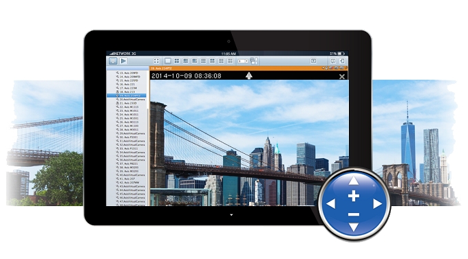 Manual recording, video snapshot, (two-way) audio*, dewarping function for fisheye cameras and Panomorph lens, PTZ mode (including click & go, PTZ control, and auto cruising by preset position), preset position control, digital zoom, instant playback, same-screen IP camera configurations, camera information |