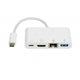 This is a USB-C to USB 3.0 with Gigabit Ethernet USB-C charging port and HDMI port hub. The USB3.0 port allows you to connect a USB device or another hub to the host computer, the USB-C female port can charge for the host computer and supply power for the hub simultaneously, the Gigabit Ethernet port allows the host computer to get access to the network and the HDMI port (DP Altmode) allows you to connect an HDMI monitor so that you can watch videos or slideshows together on a big screen. It can work on Macbook or Google new Chromebook Pixel and other USB-C supported devices.
