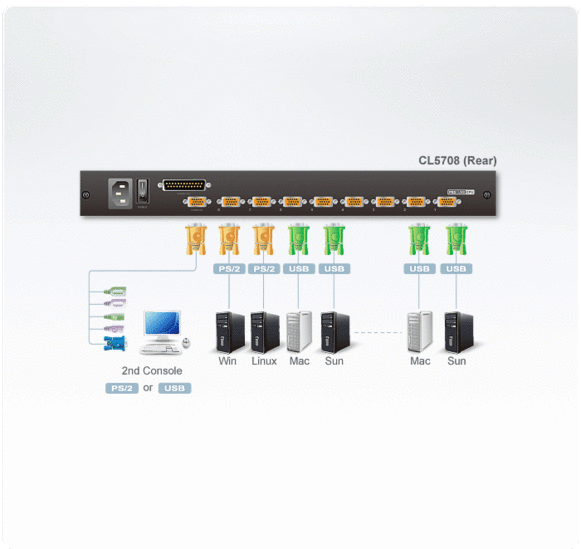 console. A single CL5708 can control up to 8 computers. As many as 31 additional