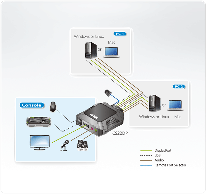 The CS22DP supports multiplatform operations allowing you to switch between