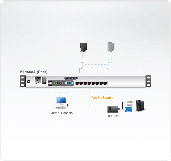 - Daisy chain up to 31 additional KVM switches to control up to 256