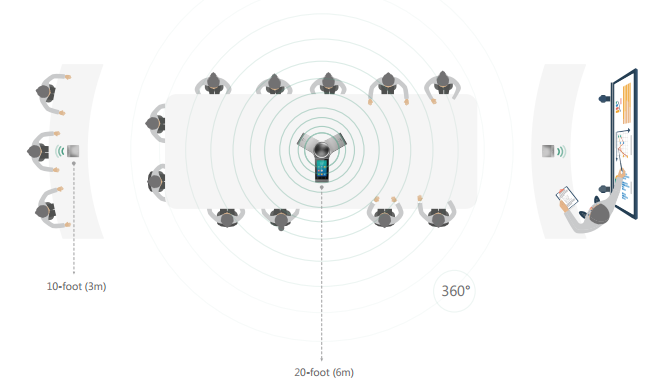 can increase voice pickup distance to 60 feet, allowing every meeting