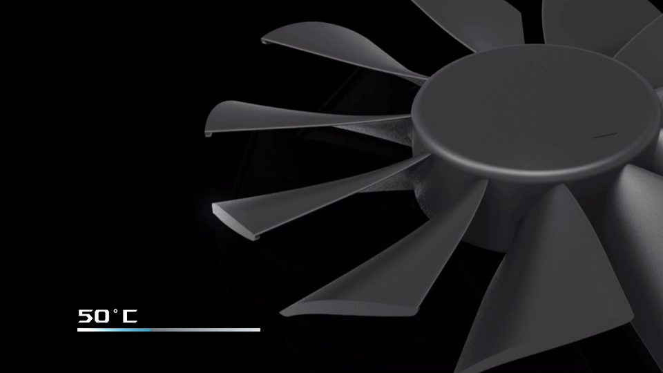 An advanced onboard controller brings fans to a standstill when the GPU core
