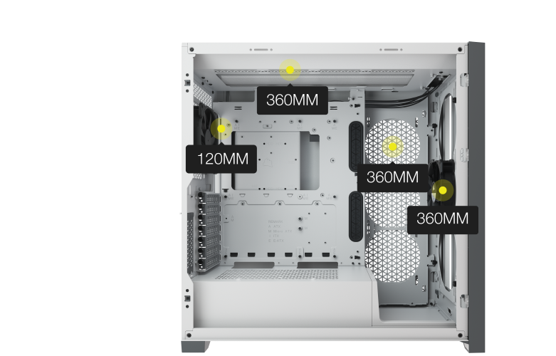 Maximum Cooling Potential: A spacious interior fits up to 10x 120mm or 4x
