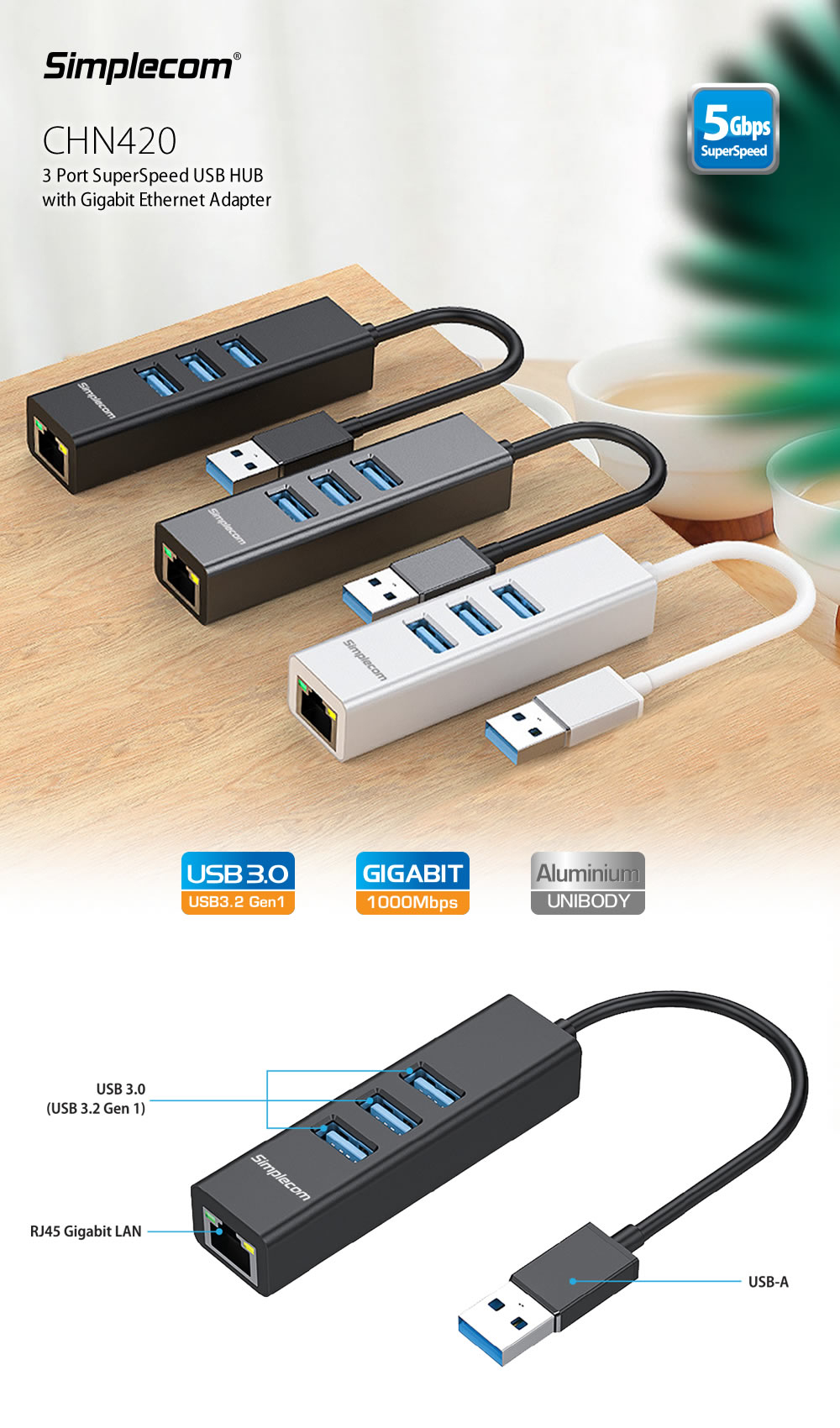 or lack of RJ45 Ethernet port, it turn a single SuperSpeed USB port into three