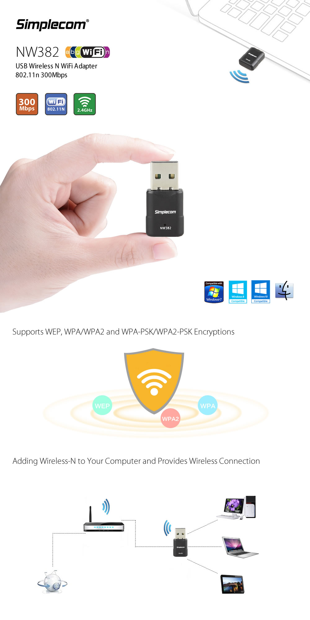 Simplecom NW382 is a 300Mbps Mini Wireless USB Adapter that connect laptop or