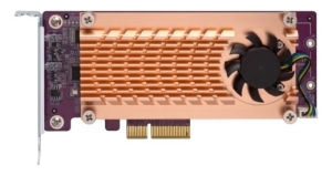 QM2 series PCIe cards add support for M.2 SSDs to a QNAP NAS, allowing users