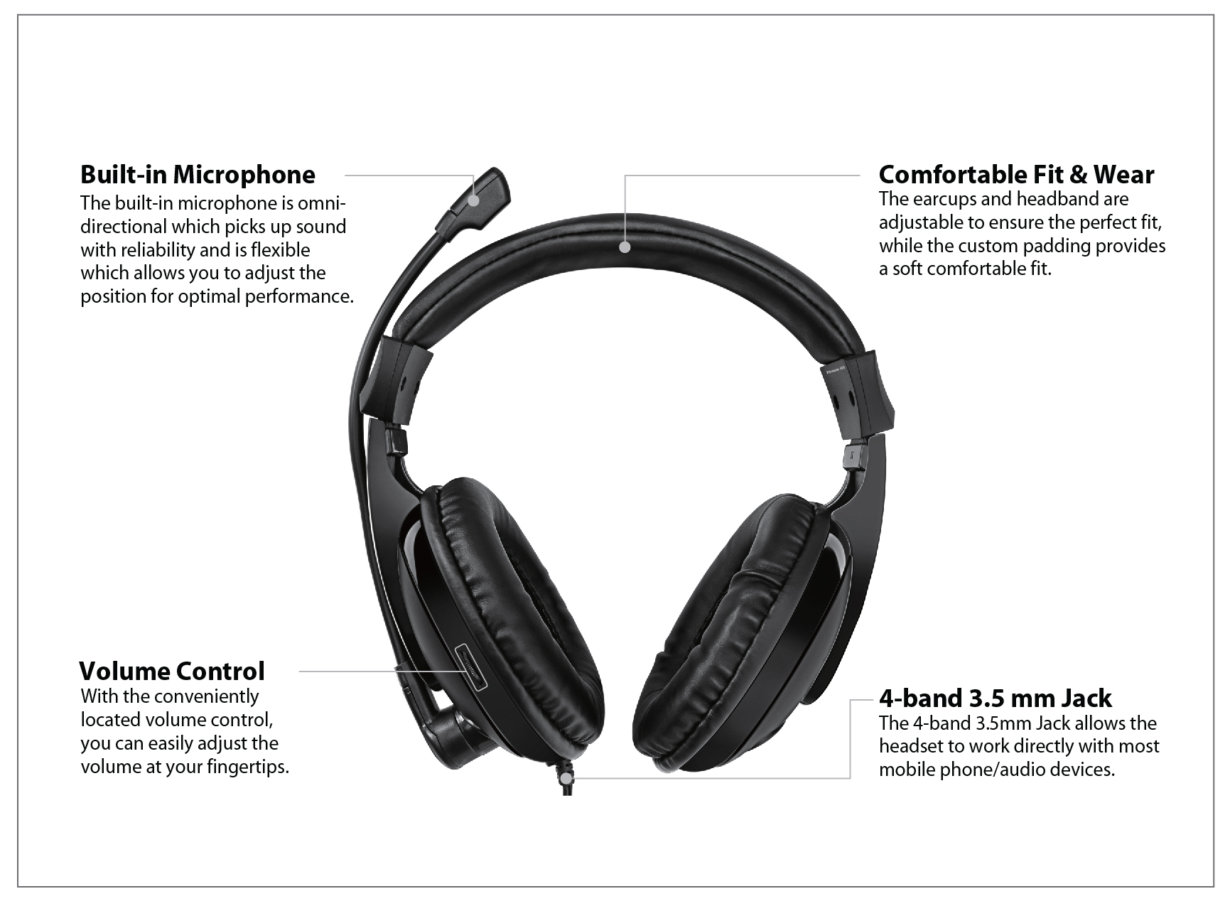 The Xtream H5 Multimedia Stereo Headphones with Microphone are stylishly designed for active lifestyles. The 4-band 3.5mm jack allows the headset to work directly with most mobile phone/audio devices. The 3.5mm adapter allows you to use the headset on computer systems that require separate input/output connections. The built-in omnidirectional microphone reliably picks up sound and is flexible, which allows you to adjust the position for optimal performance.