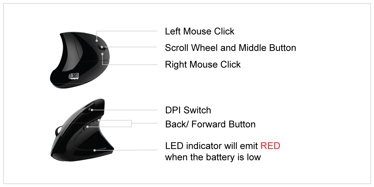Adesso iMouse E10 2.4 GHz RF Wireless Vertical Ergonomic Mouse -