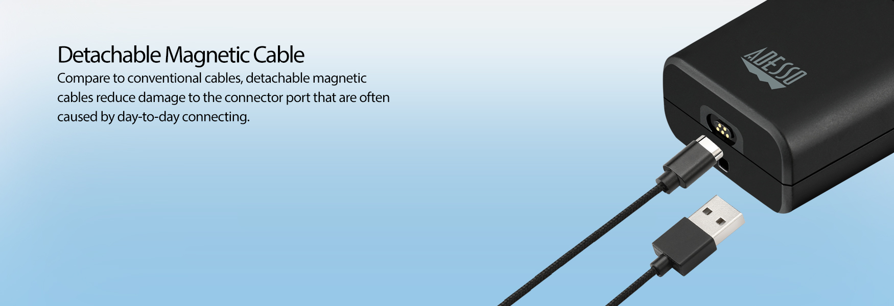 Compare to conventional cables, detachable magnetic cables reduce damage to