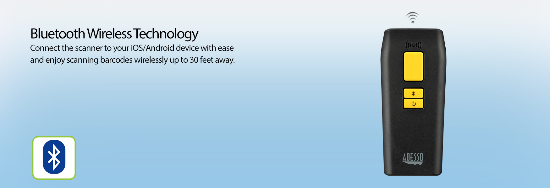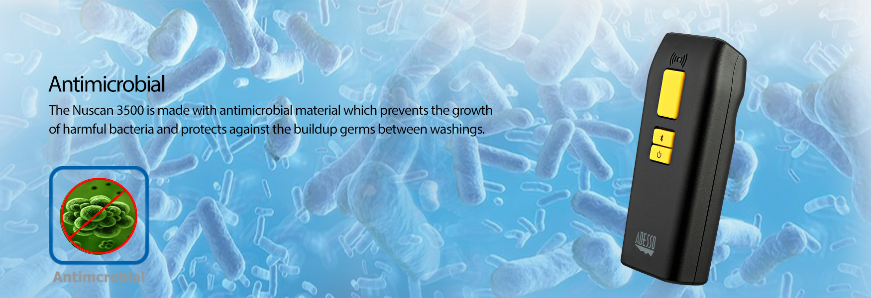 Adesso NuScan 3500TB Bluetooth Antimicrobial Waterproof 2D Barcode