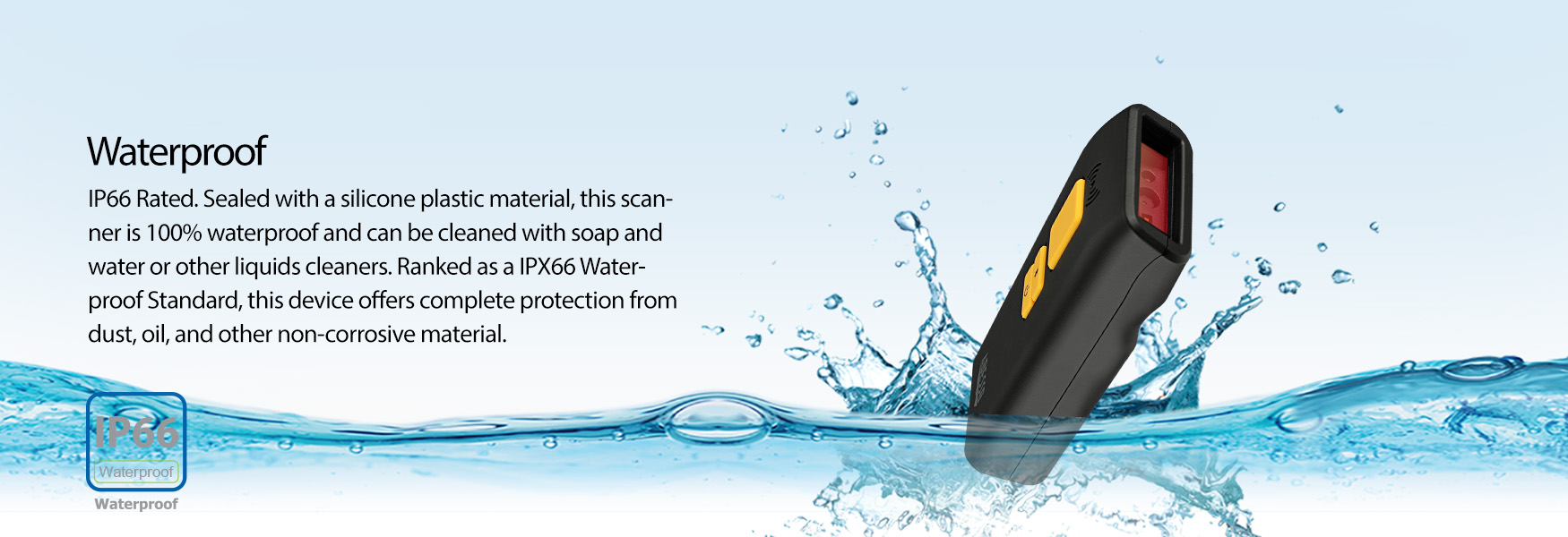 IP66 Rated. Sealed with a silicone plastic material, this scanner is 100%