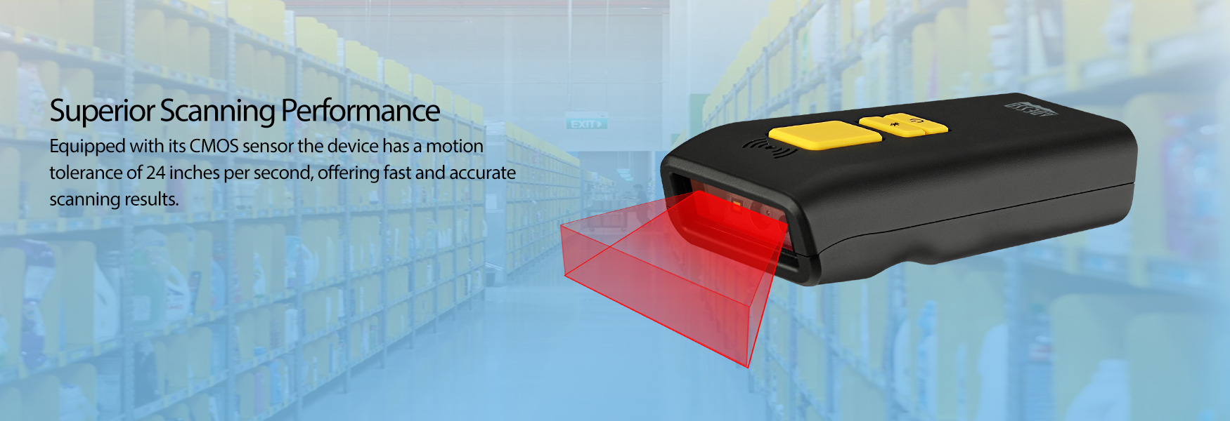 The 2D CMOS decoding engine is able to scan barcodes up to 12 inches scan