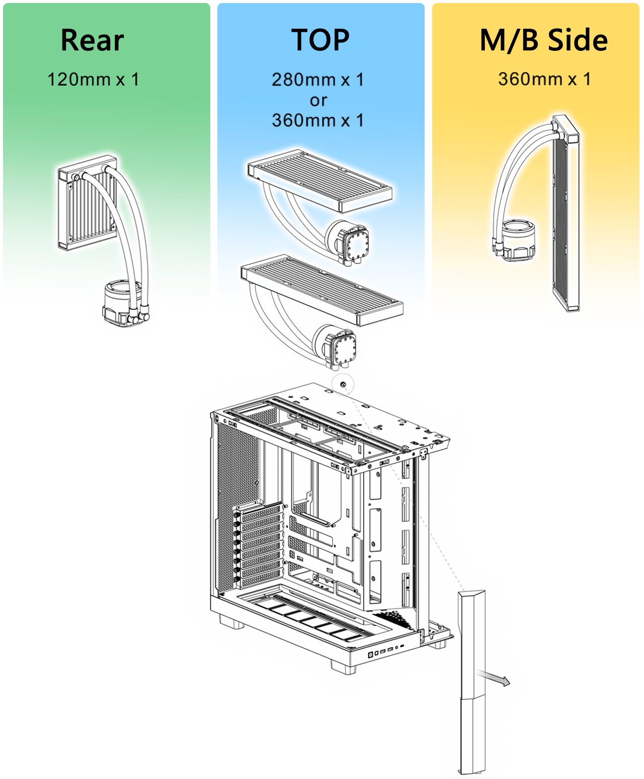 RADIATOR SUPPORT | Top: 1 x 360mm, 1 x 240mm, 1 x 120mm 1 x 280mm, 1 x 140mm