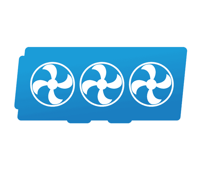 COOLING SYSTEM | Right(intake): 120 x 120 x 25 mm ARGB Lite Reverse fan (1000rpm, 21.9 dBA) x 3