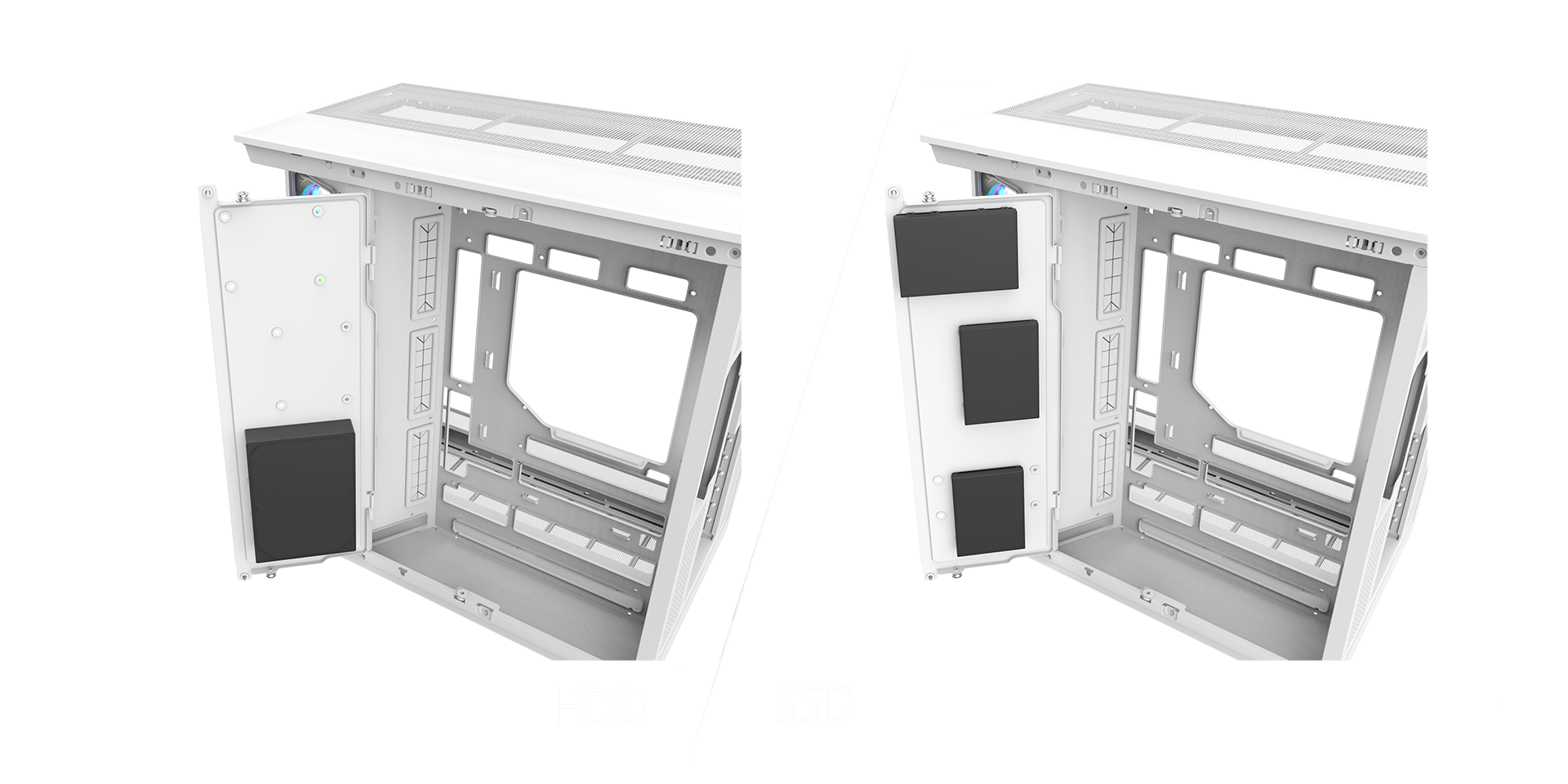 COOLING SYSTEM | Right(intake): 120 x 120 x 25 mm ARGB Lite Reverse fan (1000rpm, 21.9 dBA) x 3