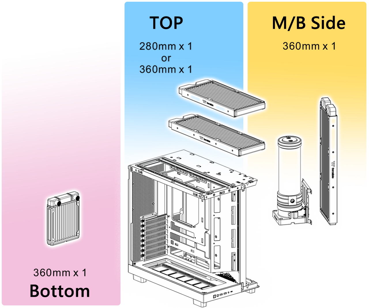 RADIATOR SUPPORT | Top: 1 x 360mm, 1 x 240mm, 1 x 120mm 1 x 280mm, 1 x 140mm