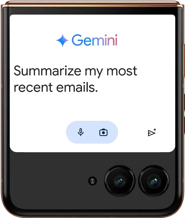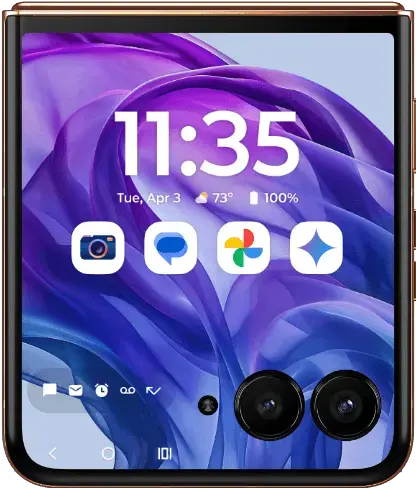 The largest, most intelligent external display on any flip phone1means more room to work and playand your motorola razr 50 ultra comes with Google Gemini app* to help you get through your day-to-day tasks. You also get Gemini Advanced and 2 TB of storage for 3 months with theGoogle One AI Premium plan**. Simply open the Google One app on your new device to redeem the offer.