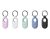 Five Galaxy SmartTag2 are in different Silicone Cases. Below each are the colour chip and colour name Blue, Mint, Lavender, White and Black.
