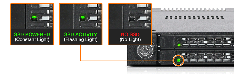 Eagle-hook tray latch securely holds the tray inside the enclosure |