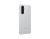 A hand holding Galaxy A56 5G in Clear Case. Top left corner of Galaxy A56 5G in Clear Case in close-up. A thickness icon with text Up to 17 percent slimmer, 1.0 millimeter.