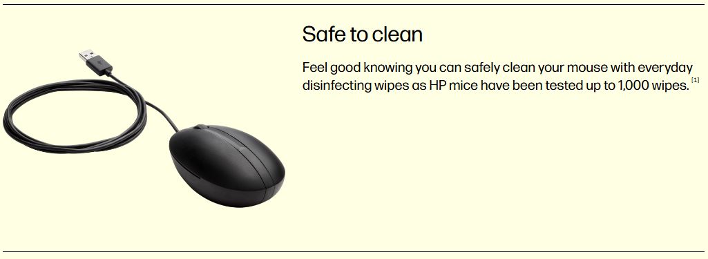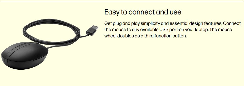 HP Wired Desktop 100 Mouse 1200dpi 3 Buttons Wired USB-A Connector Optical Red Sensor 1.2M Cable Length Black 1YR WTY