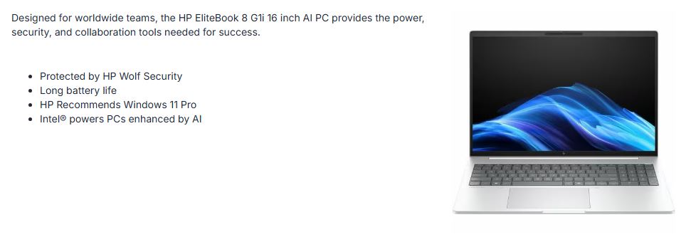 HP EliteBook 8 G1i 16" WUXGA IR PVCY Intel vPro U7-255U 64GB DDR5 2TB SSD WIN 11 PRO 5G-LTE Intel Graphics Thunderbolt Fingerprint 3yrs OS 1.7kg